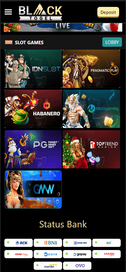 Deposit melalui pulsa di Blacktogel di permudah tanpa adanya potongan. Sehingga setiap orang berkesempatan mencoba slot terbaik yang ada di Blacktogel.